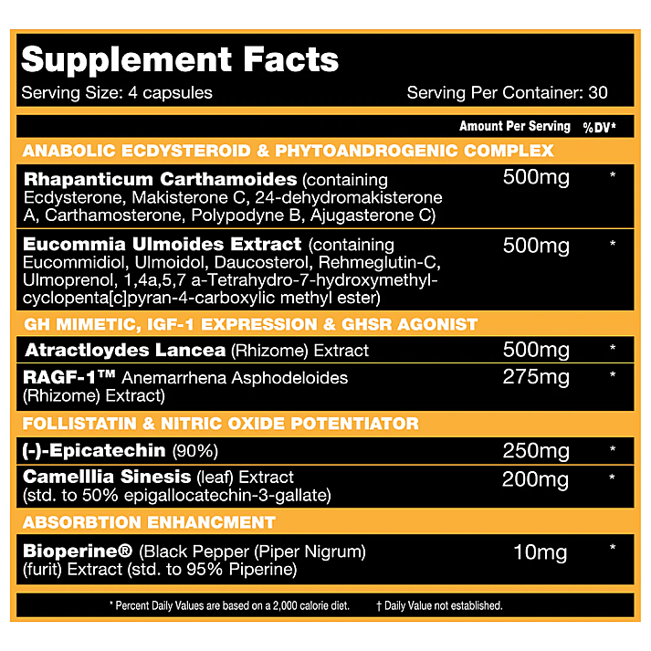 Our cutting-edge formula begins with a fully upgraded 500mg dose of Rhaponticum Carthamoides , delivering a diverse and powerful class of natural anabolic agents known as Ecdysteroids . These compounds are widely studied for their ability to support lean muscle protein synthesis, increase strength output, and enhance recovery.*