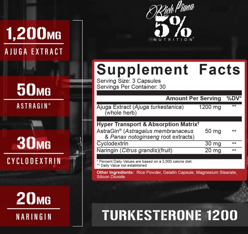 Who developed 5% Nutrition Turkesterone 1200? It's a product of 5% Nutrition, a brand known for state-of-the-art supplements, created in the spirit of Rich Piana.