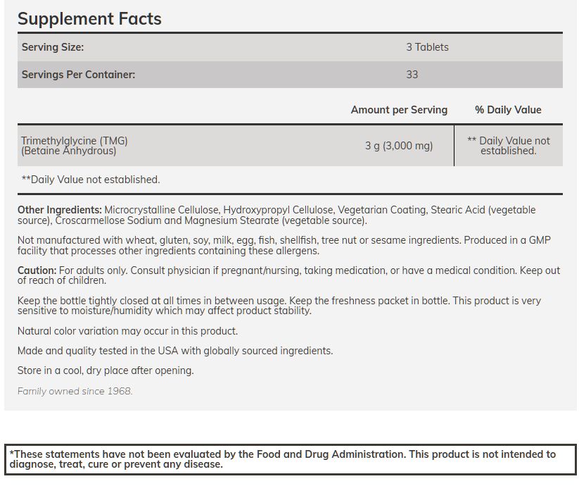 Now Foods TMG Betaine 1000 Mg - 100 Tablets Item #: NO091UPC: 733739004949