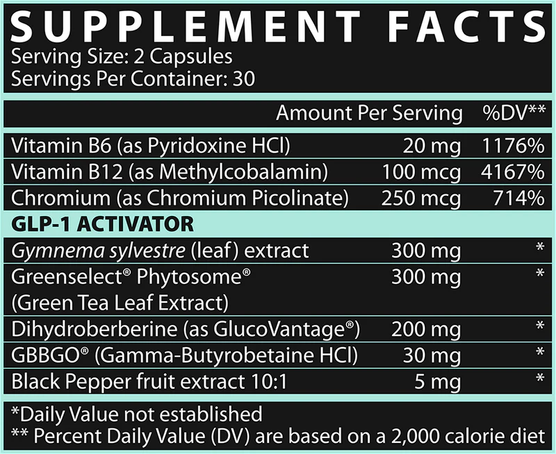 BURN30 GLP1+ is the next evolution in stim free weight loss - designed to enhance GLP-1 levels, curb cravings and accelerate fat-burning. This science-backed formula helps you lose up to 30 pounds in just 90 days.* With GreenSelect® Phytosome™ - a clinically tested ingredient for weight loss and GlucoVantage® (aka “Super Berberine”) - BURN30 GLP1+ optimizes metabolism, controls hunger and fuels fat loss - without injections or extreme dieting. We also added GBBGO® (aka “Super Carnitine”) turns up the heat with intense thermogenesis - increasing sweat and fat metabolism for maximum calorie burn. Your stimulant free transformation starts now. BURN30 GLP1+ delivers real, lasting weight loss.