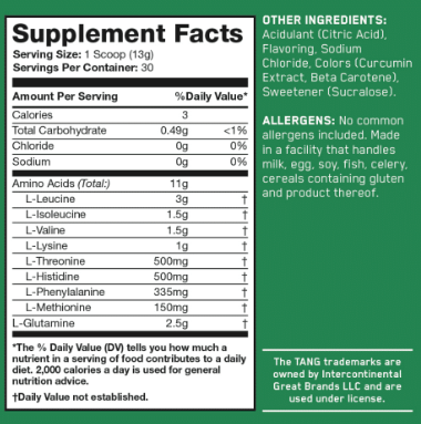 Amino Fuel is the perfect optimal blend delivering 11g of aminos per serving, 9g of which are Essential Amino Acids (EAA) including 6g of Branched Chain Amino Acids (BCAAs) at a 2:1:1 ratio (3000mg L-Leucine, 1500mg L-Isoleucine, 1500mg L-Valine) with an additional 2500mg of L-Glutamine. Amino Acids are complex chemicals that are the building blocks of protein. Essential Amino Acids (EAA) cannot be synthesised or created by the body and therefore must be supplied from the diet. Amino Fuel can be consumed 24 hours a day or when extra amino intake is required, such as any form of exercise or activity.