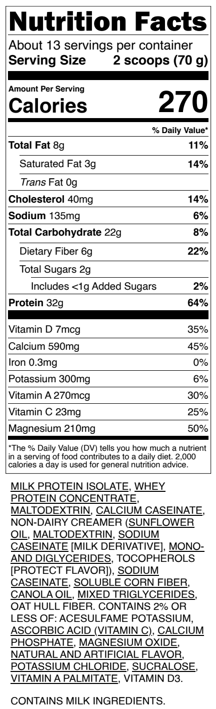 32g of protein derived from Milk Protein Isolate and Whey Concentrate 2 – 4g sugar per serving Excellent source of Calcium and Vitamins A, C & D Tested for banned substances & NSF Certified for Sport *Best by date June 2026